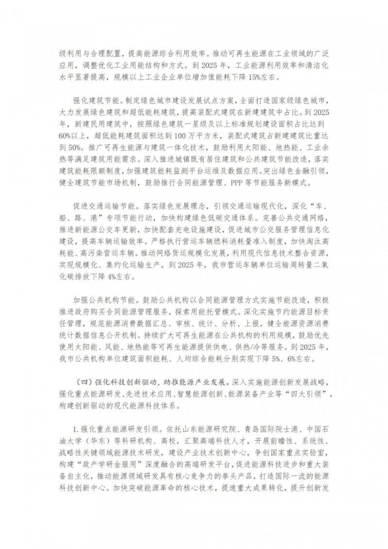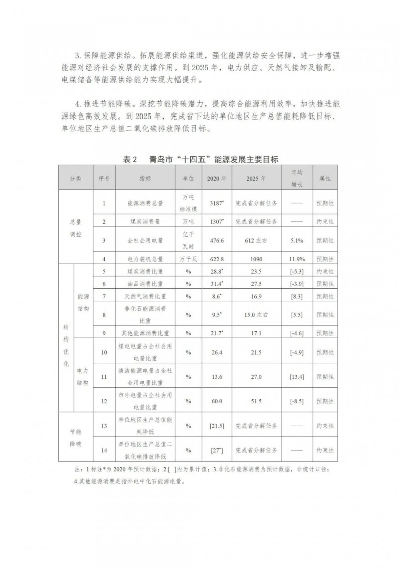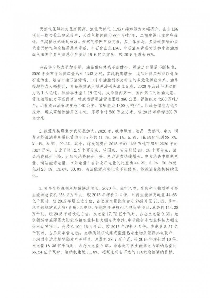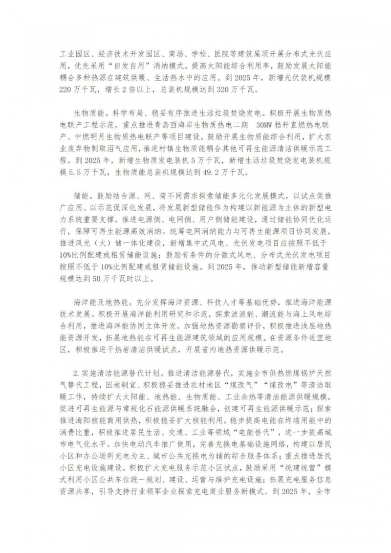 近日,山東青島市人民政府辦公廳印發(fā)了《關(guān)于印發(fā)青島市“十四五”能源發(fā)展規(guī)劃的通知》。提出了青島市“十四五”能源發(fā)展的主要任務(wù)和建設(shè)重點。實施可再生能源倍增計劃。以風(fēng)電、光伏發(fā)電為重點,以生物質(zhì)能、海洋能、地?zé)崮艿葹檠a充。到2025年,可再生能源裝機容量新增270萬千瓦左右,總裝機容量達到523萬千瓦左右,占電力總裝機的比重提升至48%左右。