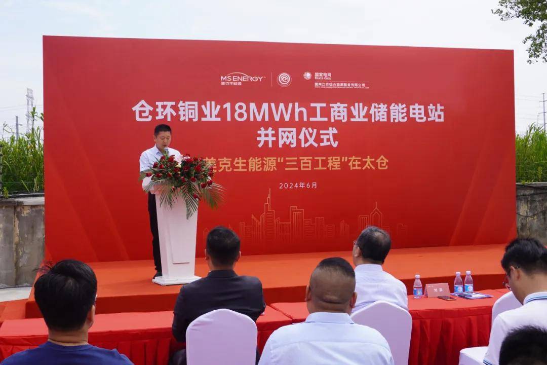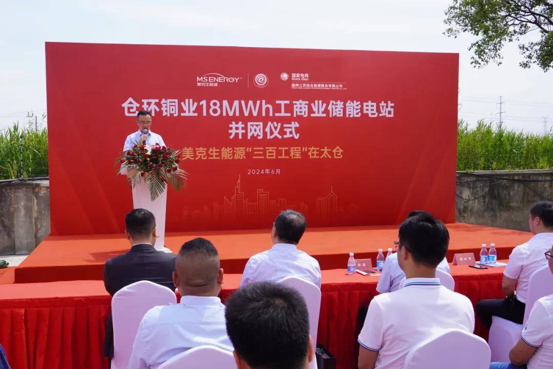 并網儀式當天,太倉市高新區(qū)經濟發(fā)展局局長屠丹平、江蘇倉環(huán)公司總經理劉濱、國網蘇州供電公司副總經理李秋實、國網江蘇綜合能源服務公司副總經理翟學鋒、國網蘇州綜合能源服務公司總經理黃建剛、國網太倉供電公司黨委書記文銳、美克生能源總裁劉雙宇博士等眾多重要嘉賓蒞臨現(xiàn)場,共同見證這一里程碑時刻。