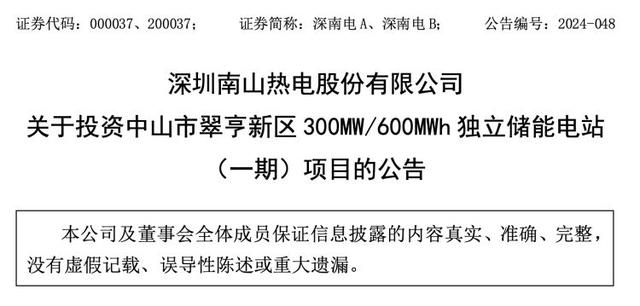 目的及影響方面,深南電A表示,投資中山市翠亨新區(qū)300MW/600MWh獨(dú)立儲(chǔ)能電站(一期)項(xiàng)目符合公司在新形勢(shì)下戰(zhàn)略發(fā)展的需求,有利于推動(dòng)公司在大型儲(chǔ)能領(lǐng)域的探索與實(shí)踐,助力公司向綜合能源服務(wù)轉(zhuǎn)型;有利于公司充分利用現(xiàn)有資源,打造新型商業(yè)模式,推動(dòng)公司全面轉(zhuǎn)型發(fā)展;有利于中山市深入貫徹落實(shí)“雙碳”政策,打造獨(dú)立儲(chǔ)能項(xiàng)目示范,協(xié)同儲(chǔ)能相關(guān)產(chǎn)業(yè)鏈;有利于盤活中山公司線路資產(chǎn),促進(jìn)國(guó)有資產(chǎn)的提質(zhì)增效。在確保公司日常經(jīng)營(yíng)和資金安全的前提下,使用中山公司線路資產(chǎn)投資中山市翠亨新區(qū)300MW/600MWh獨(dú)立儲(chǔ)能電站(一期)項(xiàng)目不影響公司日常資金周轉(zhuǎn)需要,不影響公司生產(chǎn)經(jīng)營(yíng)的正常開展。中山市翠亨新區(qū)300MW/600MWh獨(dú)立儲(chǔ)能電站(一期)項(xiàng)目產(chǎn)業(yè)方向符合公司未來(lái)的戰(zhàn)略布局,將會(huì)對(duì)公司未來(lái)的財(cái)務(wù)狀況及長(zhǎng)遠(yuǎn)發(fā)展產(chǎn)生積極影響。