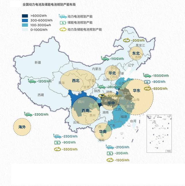 全國(guó)動(dòng)力電池及儲(chǔ)能電池規(guī)劃產(chǎn)能布局