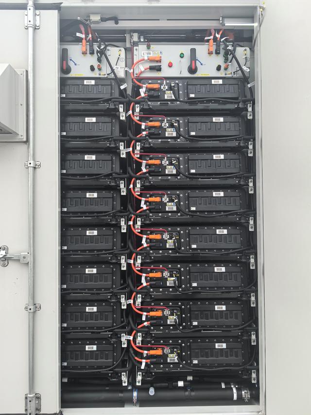 在潞城仁和儲(chǔ)能電站園區(qū)內(nèi)有20個(gè)電化學(xué)儲(chǔ)能單位,好似一個(gè)個(gè)由電池組成的“車廂”。打開“電池車廂”艙門,記者發(fā)現(xiàn),這個(gè)龐然大物是由多個(gè)小塊的磷酸鐵鋰電瓶組成的。每個(gè)儲(chǔ)能單位由2個(gè)小倉(cāng)組成,每個(gè)倉(cāng)內(nèi)有24簇電池包,每簇電池包內(nèi)有8塊電池,這些電池的壽命約在8-10年。