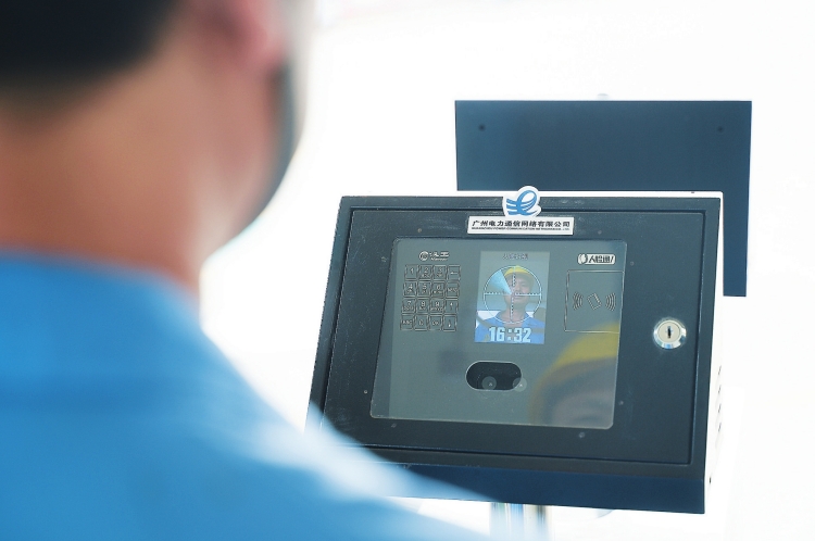 廣州供電局施工人員在“智慧工地”入口通過人臉識別入場。劉海寧 攝