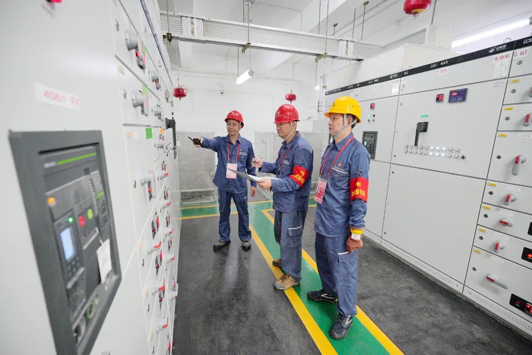 ▲南方電網(wǎng)廣東汕頭龍湖供電局保供電工作人員在賽時對電鴻化模塊及相關(guān)電力設(shè)備進(jìn)行檢查。(吳子琳 攝)