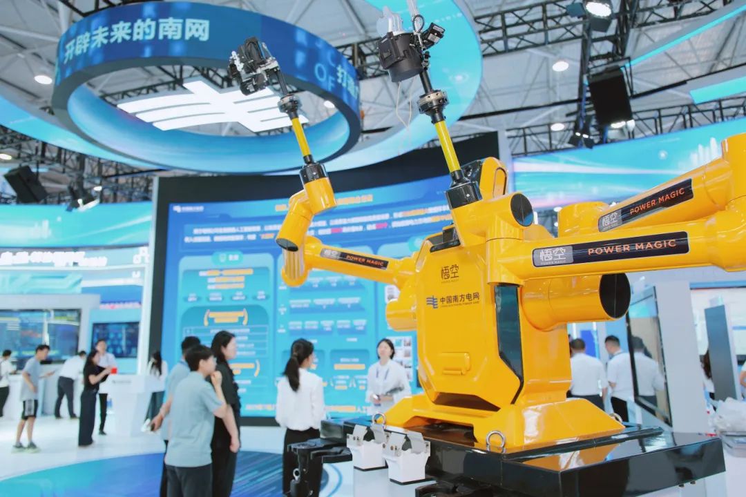 “悟空”機器人在數(shù)博會南網(wǎng)主展廳迎接觀眾。(南網(wǎng)傳媒公司 供圖)