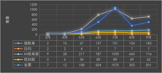 自2020年3月上線以來,報賬單據(jù)交收的數(shù)據(jù)整體趨于增長,智能報賬機共處理各類報賬單709張,A4紙單據(jù)3430張,發(fā)票2560張,抵扣聯(lián)340張,業(yè)務準確率達100%,大幅減少了財務人員的工作量。