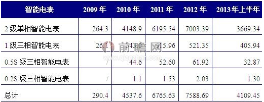 隨著物聯(lián)網(wǎng)智能家居、智能安防、寬帶網(wǎng)絡(luò)等應(yīng)用的逐步推廣,其對(duì)智能電表需求快速增長(zhǎng)。2009年下半年至2013年上半年,國(guó)家電網(wǎng)共進(jìn)行了16次智能電表招標(biāo),智能電表的招標(biāo)量合計(jì)達(dá)到2.33億只。預(yù)計(jì)智能電表采購(gòu)活動(dòng)將保持增長(zhǎng)勢(shì)頭,未來(lái)三年安裝速度將加快,至2015年底我國(guó)智能電表安裝量將達(dá)到4億只以上。