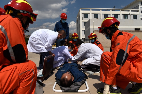 同時(shí),成立了1支應(yīng)急救援基干分隊(duì)在物資部院內(nèi)處搭設(shè)兩座防震帳篷,安裝照明設(shè)施,對(duì)立即按照現(xiàn)場(chǎng)指揮迅速救出被困人員、轉(zhuǎn)運(yùn)傷員并對(duì)傷員開展了緊急救護(hù)。