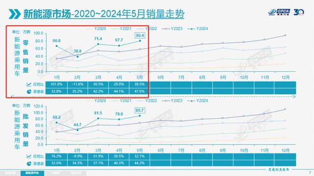 據(jù)乘聯(lián)會數(shù)據(jù),5月新能源車國內(nèi)零售滲透率達到47.0%,較去年同期33%的滲透率大幅提升了14個百分點。