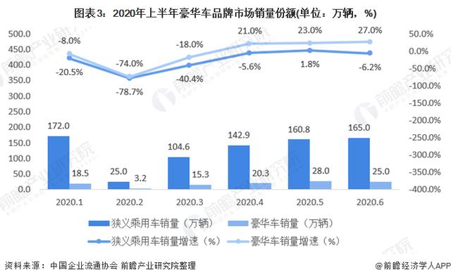 2020年上半年,豪華品牌的總銷量為1480250輛,相比上年同期的1540935輛,同比下降了3.94%。以2019年豪華品牌總銷量3111168輛為基準,如果全年同比下降3.94%,那么銷量將減少超過12萬輛。對于豪華品牌來說,這意味著面臨相當大的挑戰(zhàn),因為它們在絕對銷量上本就沒有優(yōu)勢。