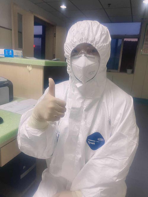 1月28日,負(fù)壓病房因人手不夠,在全院范圍緊急招募志愿者。負(fù)壓病房,需要“全副武裝”,每天和疑似病人近距離接觸,感染風(fēng)險(xiǎn)極大。但受老公經(jīng)常參加搶險(xiǎn)救援戰(zhàn)斗的影響,她多次向領(lǐng)導(dǎo)提出申請(qǐng),并遞交了入黨志愿書(shū),終于獲批“逆行”進(jìn)入最危險(xiǎn)的負(fù)壓病房。接下來(lái)的20多天,她每天都要陪著10幾個(gè)病人,認(rèn)真細(xì)致的檢查防護(hù)、登記、測(cè)體溫等等,但確診檢測(cè)是個(gè)比較漫長(zhǎng)的過(guò)程,有的病人難免產(chǎn)生焦慮、急躁的情緒,她總是像對(duì)家人一樣做好撫慰,幫助他們共克時(shí)艱。20多天來(lái),她以院為家,克服了各種工作和生活困難,比如在多重防護(hù)服下行動(dòng)不便、呼吸不暢、口干舌燥,累了就倚著墻蹲會(huì),困了就靠著椅背瞇會(huì)。總之,就這樣神秘的消失在家人的視線中,有時(shí)連報(bào)個(gè)平安的電話(huà)都沒(méi)空打。