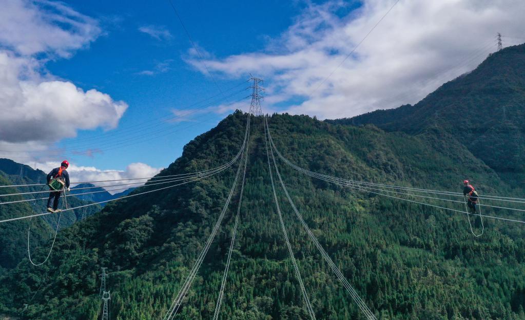 新華社成都10月21日電(記者張海磊、高博楊、王曦)負(fù)重20多斤,在距離地面100多米的銀白色導(dǎo)線(xiàn)上,克服導(dǎo)線(xiàn)晃動(dòng),走線(xiàn)檢修……在四川省雅安市天全縣喇叭河鎮(zhèn),國(guó)網(wǎng)四川電力送變電建設(shè)有限公司輸電二公司的巡檢人員羅正雄和同事們正克服雨水多、時(shí)間緊、高海拔山區(qū)高空作業(yè)風(fēng)險(xiǎn)大等困難,抓緊開(kāi)展電力高空作業(yè)。