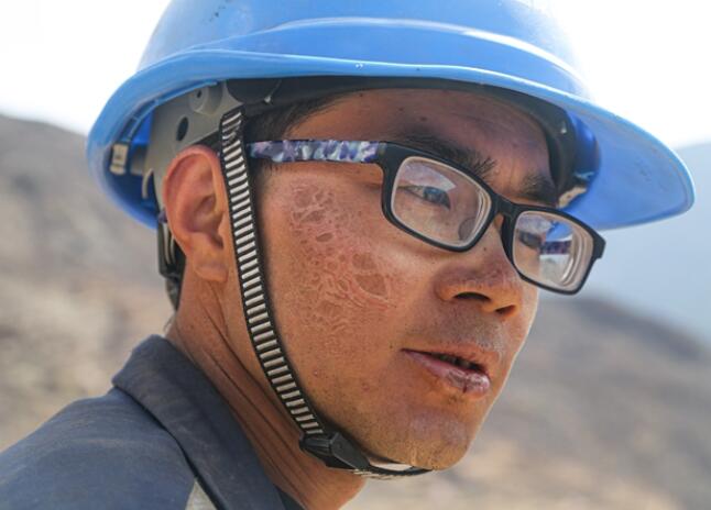 他所在的這支施工隊(duì)已經(jīng)有兩名工人因?yàn)檫m應(yīng)不了高反而離開。“眼鏡”很頑強(qiáng),盡管一樣有輕微高反,但他都堅(jiān)持下來了。紫外線輻射、雪風(fēng)沖刷,臉上滿是溝壑,但意志堅(jiān)如磐石。正是像“眼鏡”一樣最可愛、最光榮、最普通的電網(wǎng)建設(shè)者,撐起了四川甘孜巴塘高原藏區(qū)百姓的光明夢(mèng)、致富夢(mèng)、幸福夢(mèng)。