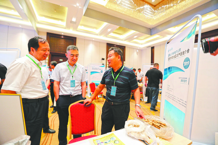 劉衛(wèi)東(中)參加定點(diǎn)扶貧地區(qū)農(nóng)產(chǎn)品推介會(huì)。