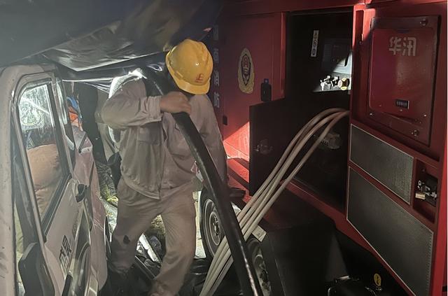 國網(wǎng)湖南岳陽供電公司員工在團(tuán)西排水點(diǎn)開展抽排水臨時電源施工。