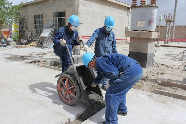 中國電力網(wǎng)訊 “快拉一車混凝土過來,這里還需要一車,大家都把混凝土鏟平了”,4月22日,新疆生產(chǎn)建設兵團第一師電力有限責任公司輸變電工區(qū)組織職工自己動手美化家園,員工們都拿著鐵鍬、刮刀等工具在院內修補地坪,讓家園更美、更靚。