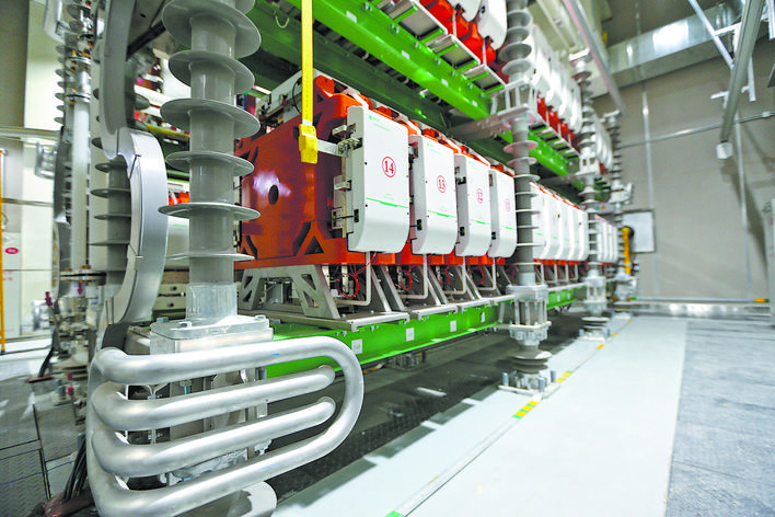 “電壓已升至740千伏并保持1分鐘,設(shè)備未出現(xiàn)放電或閃絡(luò)現(xiàn)象,整體絕緣性能滿足要求。”11月16日16時(shí),在上海500千伏柘林串聯(lián)限流電抗器站,國網(wǎng)上海市電力公司工程建設(shè)咨詢分公司變電業(yè)主項(xiàng)目經(jīng)理丁皓磊確認(rèn)該站氣體絕緣全封閉組合電器(GIS)設(shè)備耐壓試驗(yàn)一次性通過。