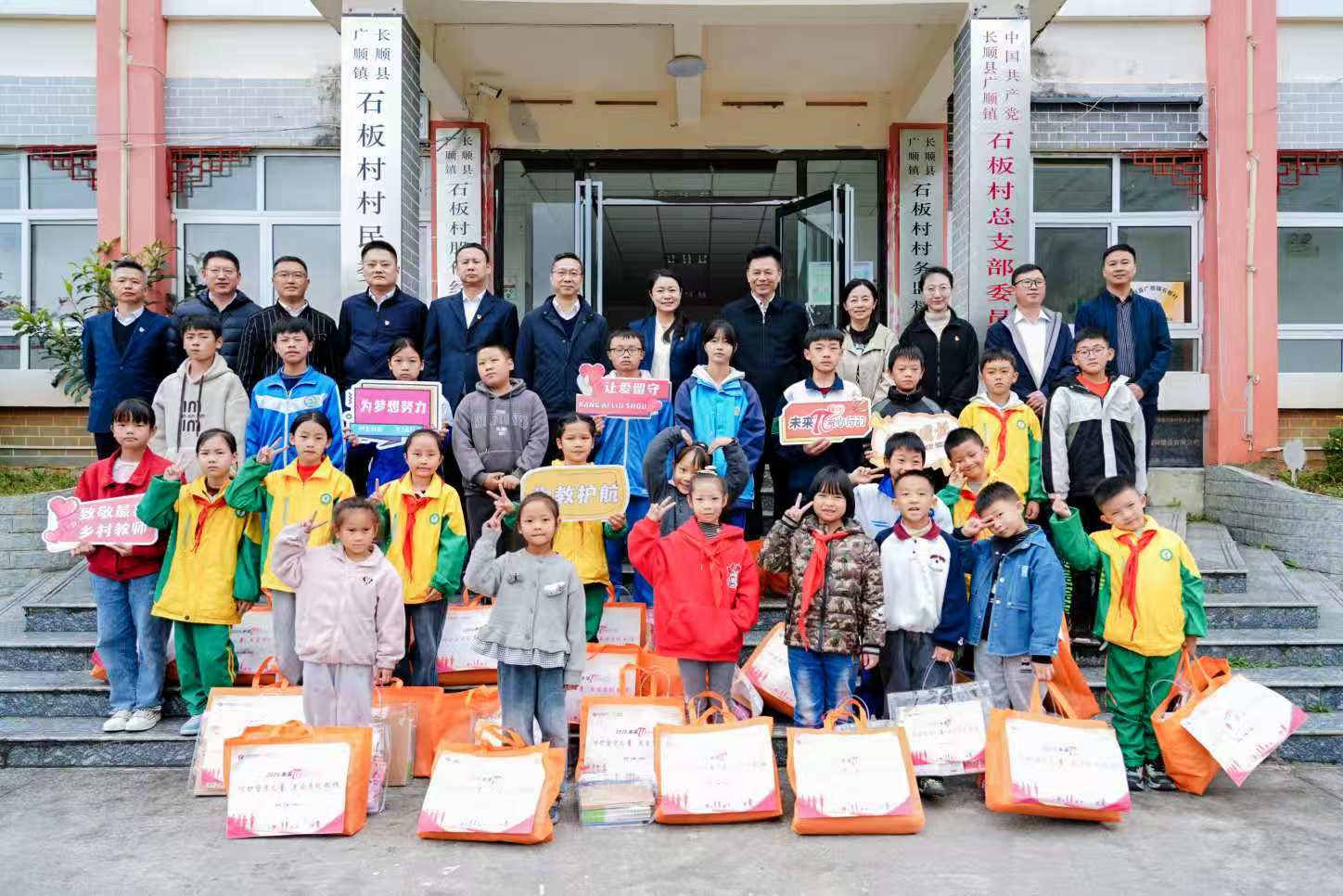 慰問環(huán)節(jié)中,李文華為鄉(xiāng)村教師送上愛心體檢卡,武琳向石板村黨支部捐贈空調(diào)和辦公電腦,與會代表共同為24名留守兒童代表送上羽絨服、文具套裝、課外讀物等學習生活用品。隨后,石板村向公司贈送錦旗,以此表達對公司持續(xù)幫扶的誠摯謝意。