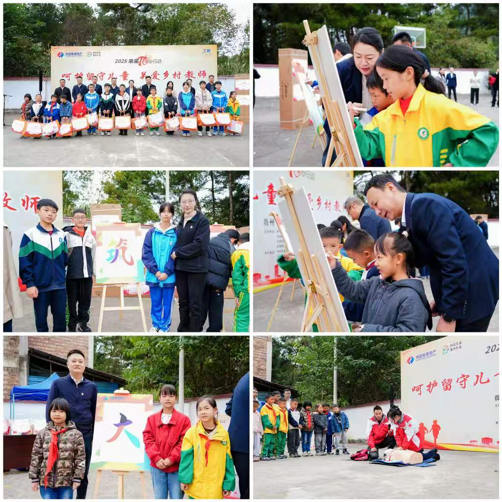 本次活動從“安全守護、物資幫扶、陣地升級”三個維度為石板村提供全方位關(guān)愛。貴州省紅十字會資深老師受邀為留守兒童開展“防溺水與應急包扎”安全教育課,通過理論講解與實際操作,幫助孩子們掌握實用的安全防護技能。在互動環(huán)節(jié),領(lǐng)導和孩子們共同參與“大國基建 為民筑城”主題背景板涂色創(chuàng)作,用色彩傳遞守護與溫暖,并在協(xié)作中理解公益內(nèi)涵。