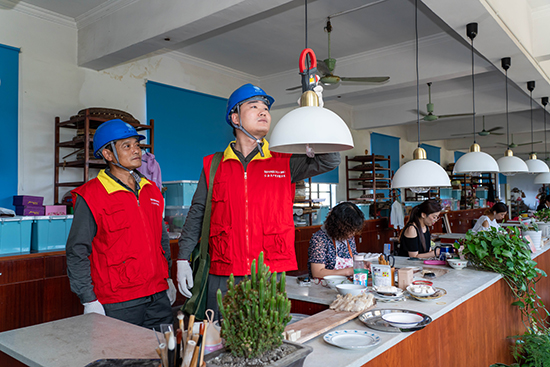當天,紅船共產(chǎn)黨員服務(wù)隊隊員走進善璉湖筆廠裝套、梳毛等生產(chǎn)車間,對內(nèi)部電氣主接線、高低壓設(shè)備、應(yīng)急電源燈和用電工器具等關(guān)鍵設(shè)備進行安全排查,幫助糾正不安全用電行為,督促用戶及時整改。在中國湖筆文化館內(nèi),他們仔細檢查配電箱及低壓線路,對內(nèi)部線路老化破損、插座開關(guān)接觸不良等問題進行消缺處理,并對警示標志等進行規(guī)范整頓,精心營造安全用電環(huán)境。