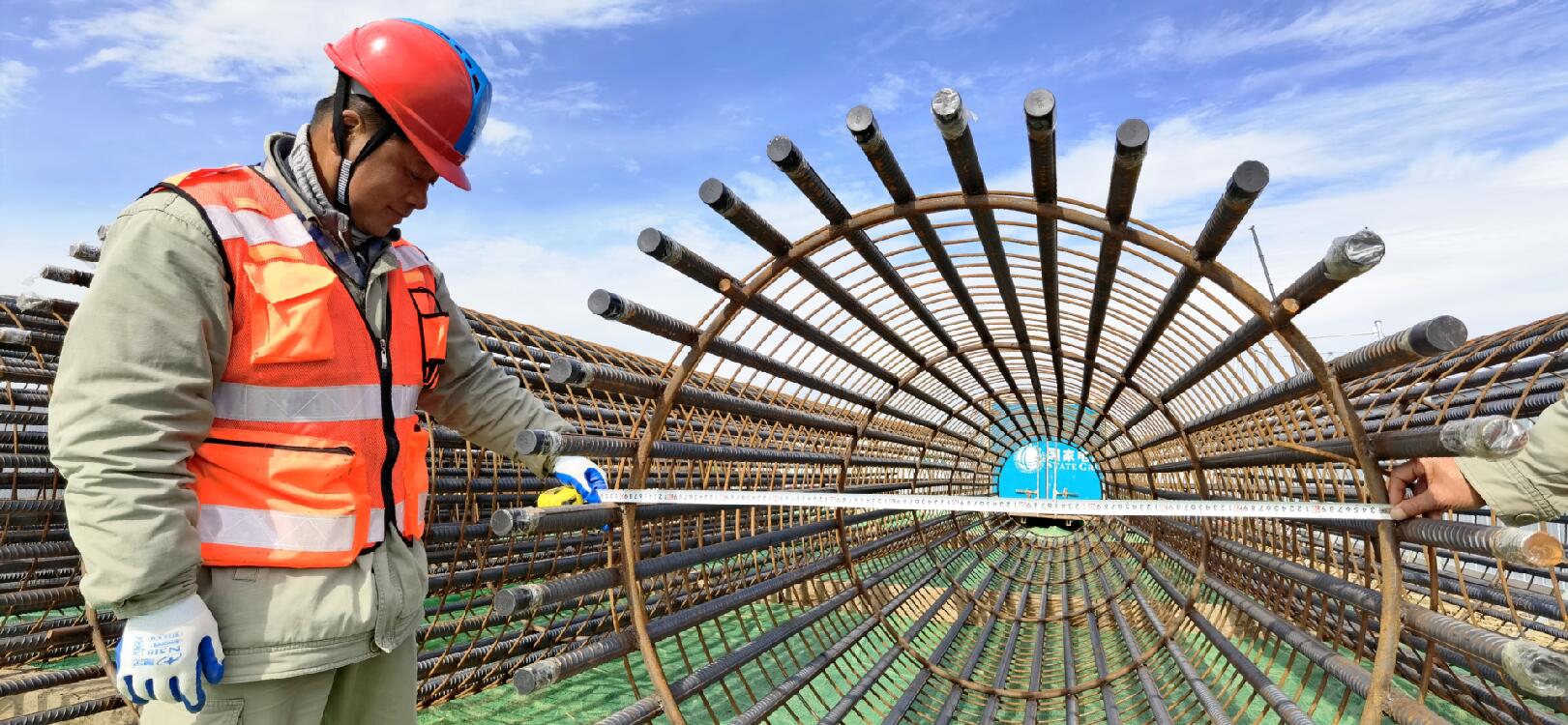 11月9日,在湖北省鐘祥市豐樂(lè)鎮(zhèn)楓梓院村 ,湖北送變電公司施工人員王玉清在白鶴灘至江蘇±800千伏特高壓直流輸電線路(鄂7標(biāo)段)漢江大跨越現(xiàn)場(chǎng),認(rèn)真檢查基礎(chǔ)鋼筋籠主筋長(zhǎng)度、直徑。該工程是國(guó)家“西電東送”戰(zhàn)略部署的重點(diǎn)工程,也是加大基礎(chǔ)設(shè)施領(lǐng)域補(bǔ)短板力度的工程之一。工程建成后,對(duì)優(yōu)化國(guó)家能源配置、保障電力安全穩(wěn)定供應(yīng)、推動(dòng)綠色發(fā)展等具有重要戰(zhàn)略意義。(張周、郭暉 攝)