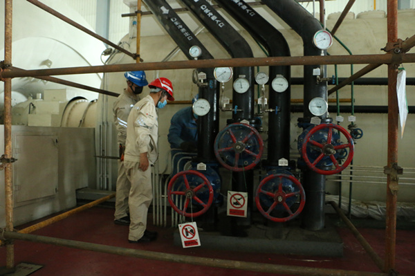 攻堅(jiān)克難,保機(jī)組穩(wěn)定運(yùn)行。大鵬之動(dòng),非一羽之輕也;騏驥之速,非一足之力也。盛夏的廠房?jī)?nèi)異常悶熱,機(jī)組設(shè)備發(fā)出來(lái)的熱量讓人喘不過(guò)氣來(lái),就在這種條件下,該廠干部職工為了快速消除缺陷,不懼困難,連續(xù)奮戰(zhàn)在現(xiàn)場(chǎng)??偣こ處煻诖蠹易⒁獍踩啌Q休息,防止中暑,并協(xié)調(diào)解決工器具及材料,查看作業(yè)環(huán)境,檢查安全措施;設(shè)備部積極與哈爾濱電機(jī)廠取得聯(lián)系,請(qǐng)專業(yè)人員入廠探討解決方法,同時(shí)編制安全技術(shù)組織措施方案,解決設(shè)備作業(yè)過(guò)程中遇到的技術(shù)性問(wèn)題,對(duì)設(shè)備作業(yè)過(guò)程中出現(xiàn)的質(zhì)量問(wèn)題提出整改意見;安監(jiān)部強(qiáng)化監(jiān)督,從兩票控制措施執(zhí)行、腳手架及現(xiàn)場(chǎng)防爆行燈漏電保護(hù)器的使用情況到確認(rèn)施工現(xiàn)場(chǎng)氫氣含量等無(wú)死角的全程檢查盯守,為消缺工作保駕護(hù)航;發(fā)電部運(yùn)行人員全力配合,嚴(yán)格按照工作票所列危險(xiǎn)點(diǎn)布置安全措施,開關(guān)閥門,在檢修期間密切監(jiān)視發(fā)電機(jī)風(fēng)溫,發(fā)現(xiàn)問(wèn)題及時(shí)對(duì)參數(shù)進(jìn)行調(diào)整,在保證機(jī)組安全運(yùn)行的基礎(chǔ)上,為消缺工作創(chuàng)造便利條件;電氣車間電機(jī)班人員分解氫冷器冷卻水出、入口法蘭短接及彎頭,在氫冷器冷卻水入口法蘭處加裝堵板,把配制好的藥液從氫冷器冷卻水出口彎頭處注滿氫冷器。工作中大家分工明確,忙而不亂,盡管現(xiàn)場(chǎng)氣溫高,卻沒(méi)有阻擋大家的干勁。