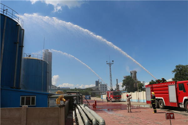 消防隊接到報警后立即出動消防車趕往火災現(xiàn)場進行滅火,同時聯(lián)系化廠消防隊支援。各應急組到達現(xiàn)場后,緊張有序的開展應急救援。經過協(xié)同作戰(zhàn),燃油罐區(qū)明火已經撲滅,消防人員正在清理現(xiàn)場,防止復燃,無其他設備、人員不安全事件。至此演練結束,高金鍇宣布應急響應結束,關閉應急預案。