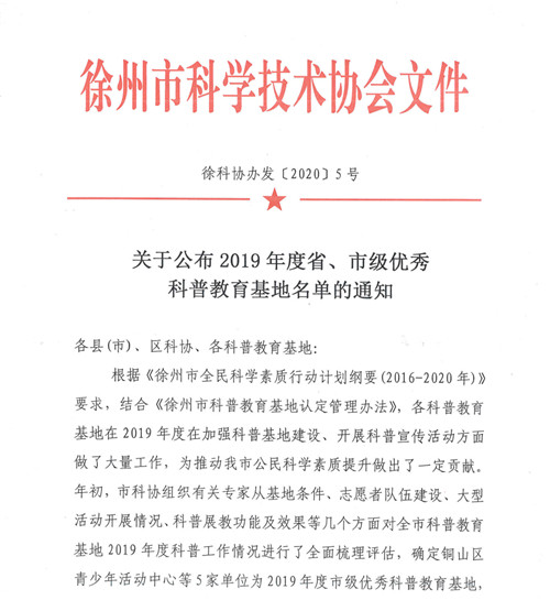 中國電力網(wǎng)訊 近日,徐州市科協(xié)發(fā)布《關(guān)于公布2019年度省、市級優(yōu)秀科普教育基地名單的通知》(徐科協(xié)辦發(fā)﹝2020﹞5號),公司在72家科普教育基地中脫穎而出,被評為2019年徐州市優(yōu)秀科普教育基地,并獲得專項獎勵,是徐州市唯一一家獲得表彰的企業(yè)類科普教育基地。