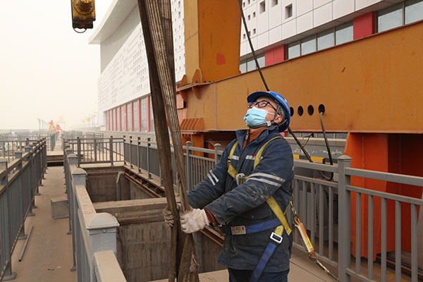 為了戰(zhàn)勝惡劣的風沙天氣,確保下游人民群眾的生命財產安全,保證黃河海勃灣水利樞紐大壩的安全穩(wěn)定、發(fā)電機組平穩(wěn)運行,該公司全體職工信念堅定、目標一致,展開了一場聲勢浩大的迎戰(zhàn)風沙活動。在布滿沙塵的黃河岸邊,水工觀測專業(yè)人員絲毫沒有受到天氣的影響,本著實事求是、精準測量的原則,將測量線路、構造物位置及高程精準的定位到水平面上,保障建筑測量數據可靠有力,為大壩安全穩(wěn)定提供有力支撐;在風沙肆虐的壩上公路,生產一線職工頂著凌冽的大風,認真執(zhí)行機組開機前的各項準備工作,精準指揮起重門機運行,將一塊又一塊機組蓋板平穩(wěn)吊起又平穩(wěn)落下,為機組開機安全奠定基礎。一會功夫,他們的身上、臉上都掛上了一層細沙,他們用辛勤和苦干,清除了一個個隱患,打開了安全的大門。