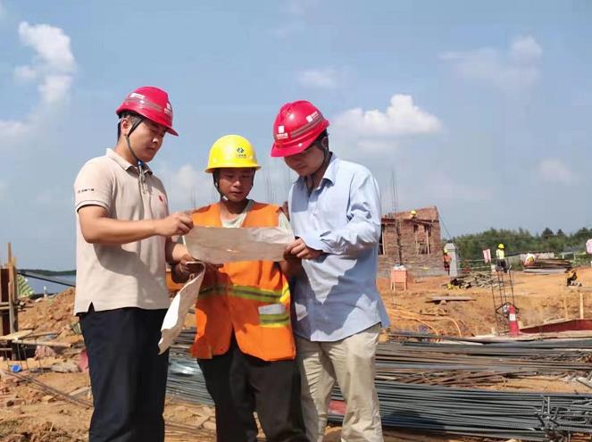 赤日炎炎似火燒。10月1日,在舉國歡慶的日子里,熱鬧的石壩口50兆瓦漁光互補光伏項目現(xiàn)場,活躍著一群追“光”人,他們扎根在項目上,守護項目建設的安全、質(zhì)量、進度。為了避開高溫時段,天剛蒙蒙亮,該公司新能源公司員工趙禹涵、劉宸佑就來到光伏升壓站施工現(xiàn)場,他們組織施工人員核對一天的項目任務,開展“三講一落實”,夯實施工安全基礎。