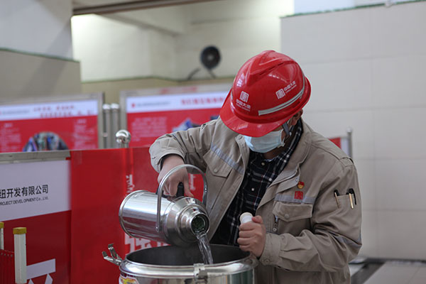 工會為檢修現(xiàn)場提供熱水服務(wù)