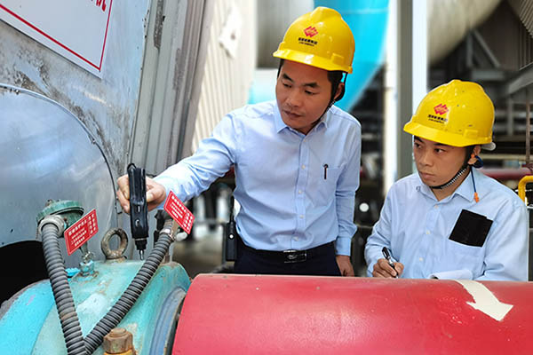 圖為運行人員測量鍋爐高壓輔機振動情況