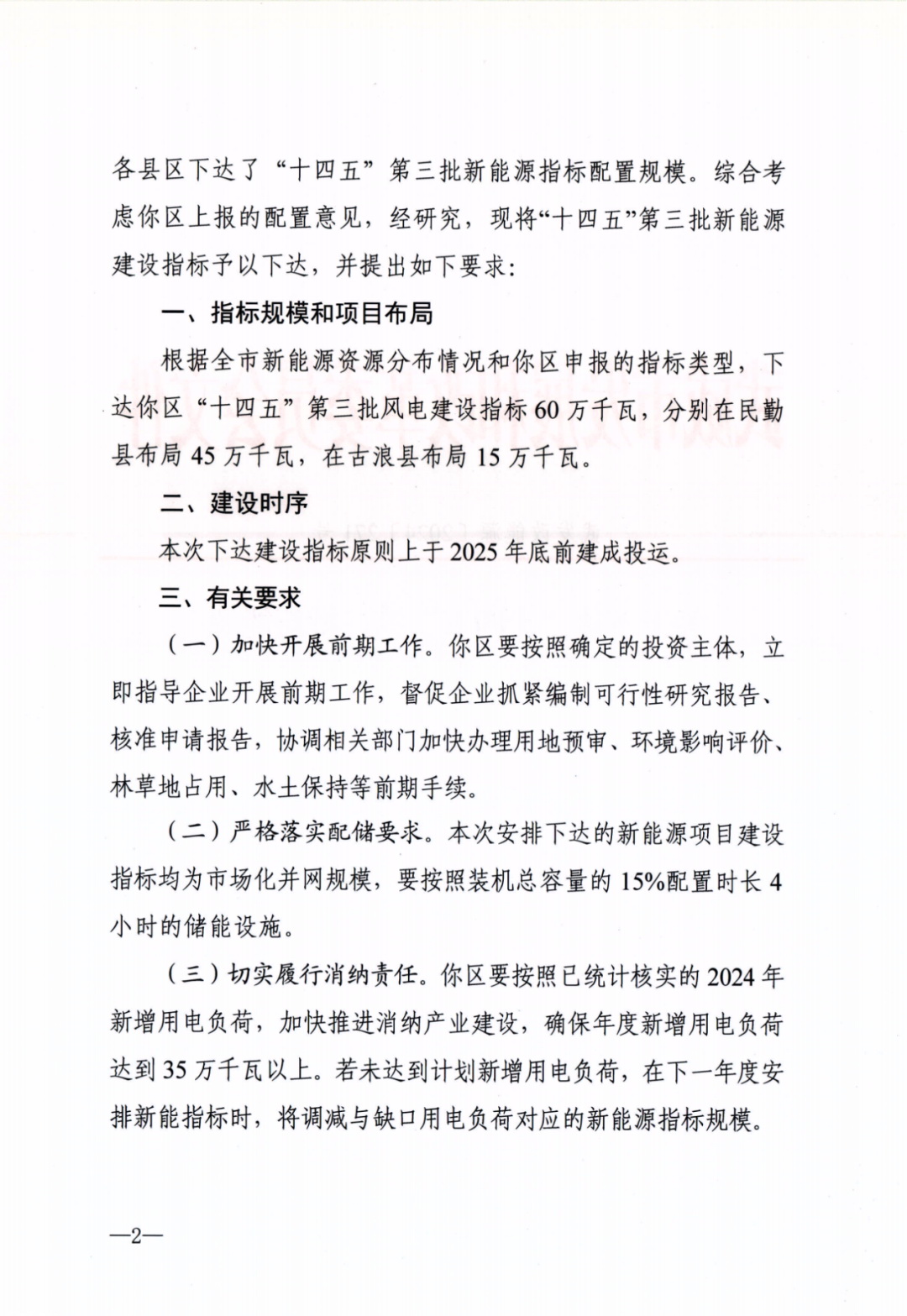 《通知》顯示,武威市本次共下達(dá)100萬(wàn)千瓦風(fēng)電建設(shè)指標(biāo),其中,古浪縣布局55萬(wàn)千瓦,民勤縣布局45萬(wàn)千瓦。以上建設(shè)指標(biāo)原則上均于2025年底前建成投運(yùn)。