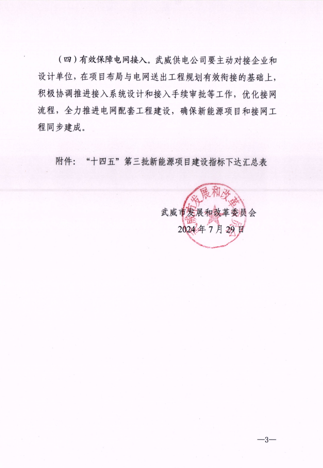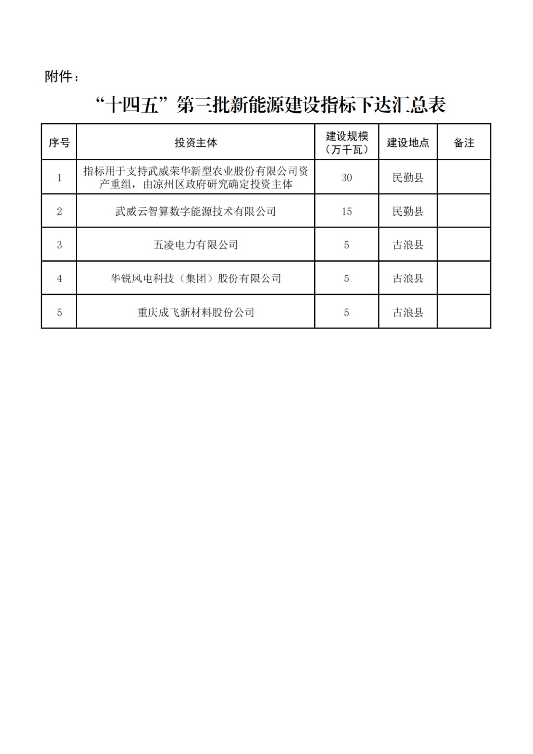 7月30日,甘肅省武威市發(fā)改委發(fā)布《關(guān)于下達(dá)“十四五”第三批新能源建設(shè)指標(biāo)的通知》。
