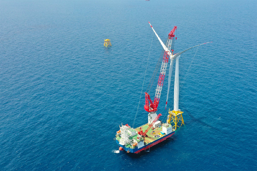 5月6日,由中國能建廣東院勘察設(shè)計、廣東火電參建的國內(nèi)首個近海深水區(qū)海上風(fēng)電場——華電陽江青洲三500兆瓦海上風(fēng)電場完成首臺風(fēng)機(jī)吊裝。