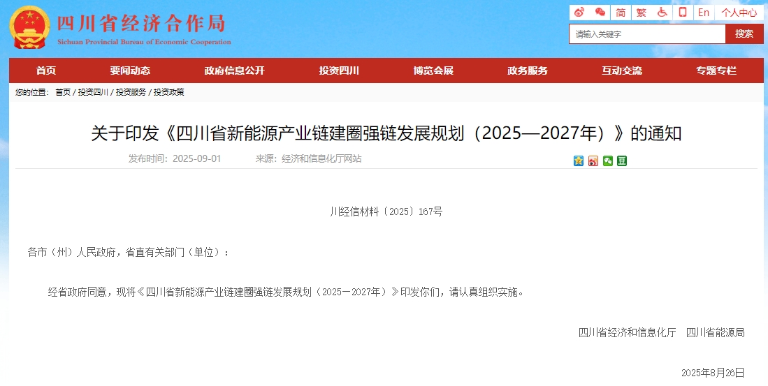 近日,四川省經(jīng)濟(jì)和信息化廳聯(lián)合省能源局印發(fā)《四川省新能源產(chǎn)業(yè)鏈建圈強(qiáng)鏈發(fā)展規(guī)劃(2025—2027年)》(以下簡(jiǎn)稱《規(guī)劃》)?!兑?guī)劃》聚焦光伏、風(fēng)電、氫能、新型儲(chǔ)能等重點(diǎn)領(lǐng)域的產(chǎn)業(yè)發(fā)展綜合實(shí)力提升,提出到2027年,四川省新能源產(chǎn)業(yè)鏈營(yíng)業(yè)收入超過(guò)5000億元,力爭(zhēng)達(dá)到6000億元的發(fā)展目標(biāo)。