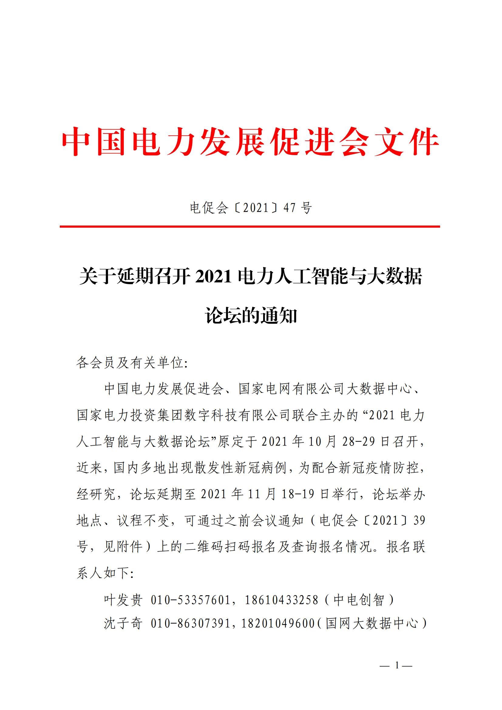 關于延期召開2021電力人工智能與大數(shù)據(jù)論壇的通知