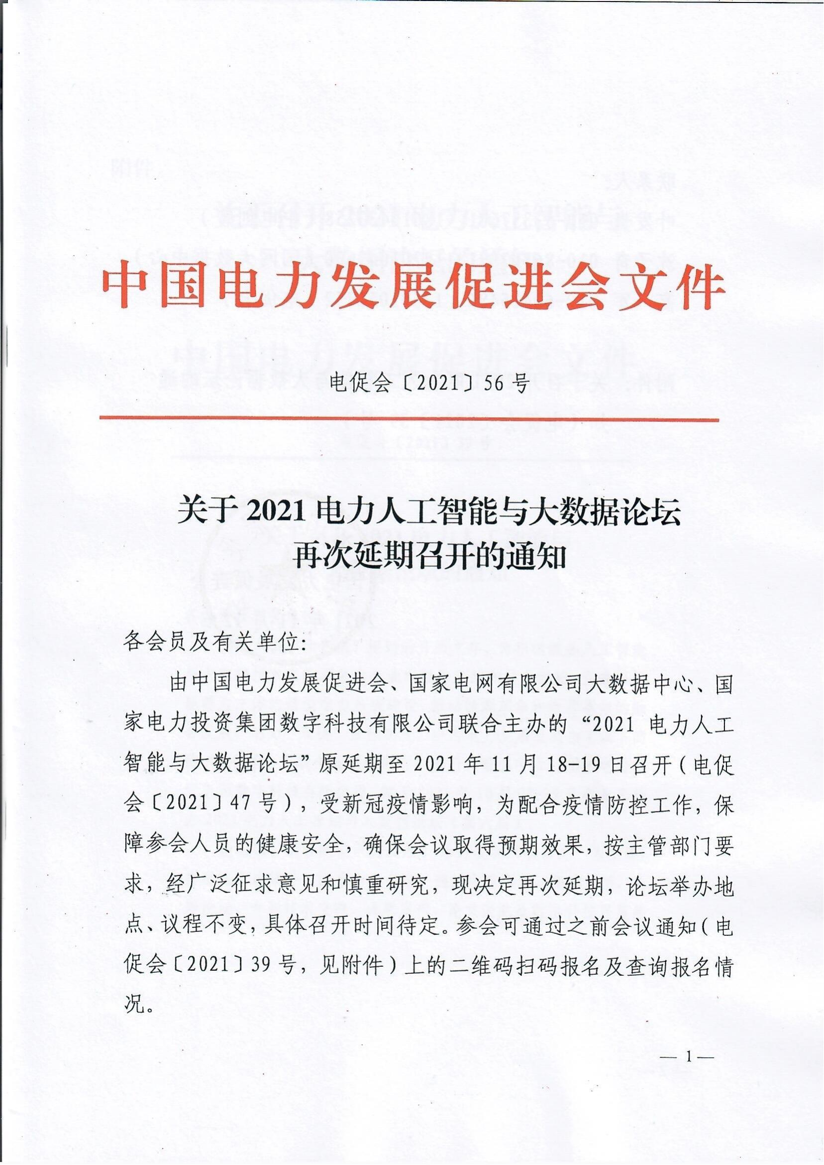 關(guān)于2021電力人工智能與大數(shù)據(jù)論壇再次延期召開(kāi)的通知