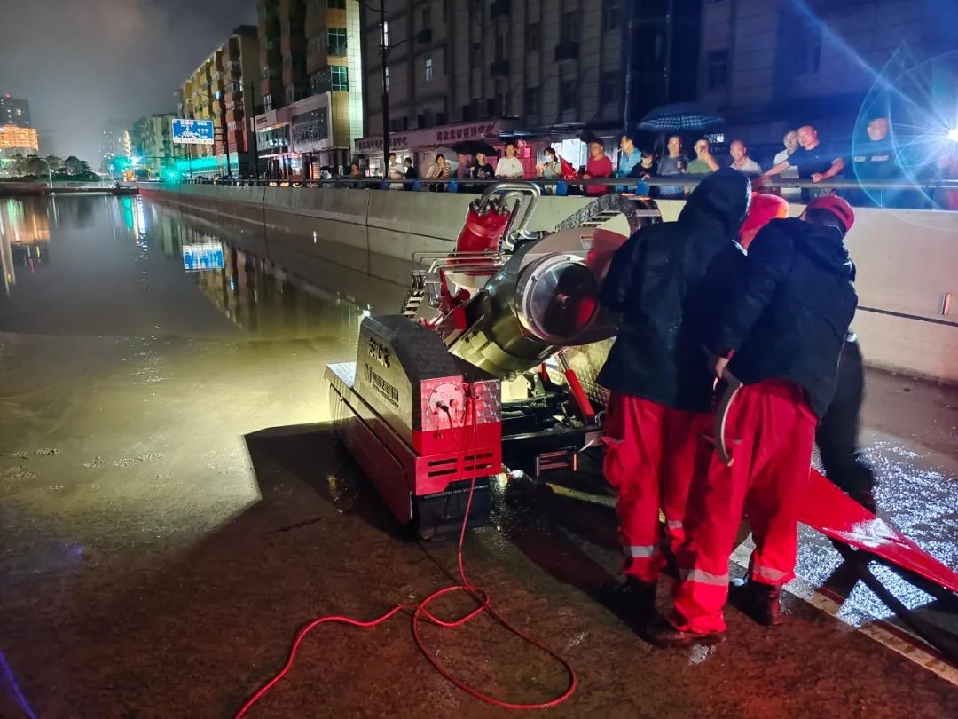 鄭州方向,安能三局派出25人,4臺龍吸水,2臺一體化泵車,在京廣北路隧道由北往南展開抽排水。針對鄭州站西廣場積水嚴(yán)重情況,中國安能三局采取“人歇機(jī)不停、兩班連續(xù)戰(zhàn)”的戰(zhàn)法,截止22日12時00分,完成抽排水26萬方,水位下降約3.5米,已經(jīng)大幅度下降,西北側(cè)隧道道路面露出約60米。因下半夜抽排現(xiàn)場連續(xù)強(qiáng)降雨,抽排水仍在緊張工作中。在抽排水現(xiàn)場,全體抽排水指戰(zhàn)員白天冒高溫、晚上頂濕冷,沒有一人叫苦叫累,他們團(tuán)結(jié)協(xié)作,有序有力奮戰(zhàn)在抽排水一線。