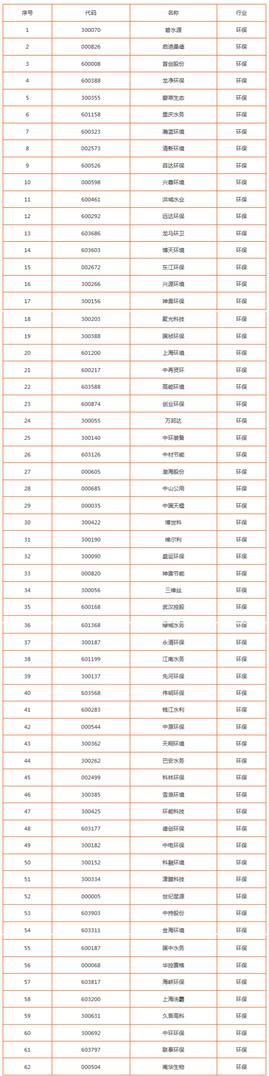 從具體企業(yè)來(lái)看,A股環(huán)保行業(yè)有62家上市公司。