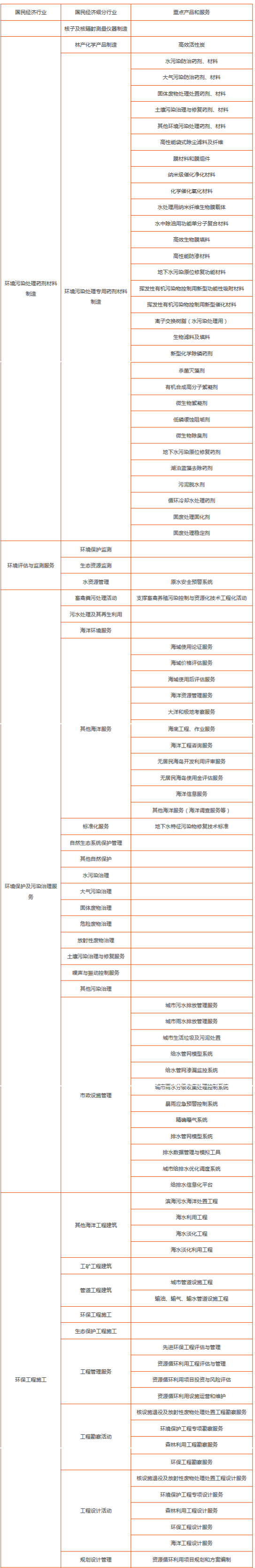先進(jìn)環(huán)保產(chǎn)業(yè)重點(diǎn)國(guó)民經(jīng)濟(jì)行業(yè)如下: