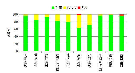 西北諸河、浙閩片河流、長江流域、西南諸河和珠江流域水質為優(yōu),黃河、松花江和淮河流域水質良好,遼河和海河流域為輕度污染。