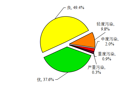 全國337個地級及以上城市平均優(yōu)良天數(shù)比例為87.0%,同比上升5.0個百分點。202個城市環(huán)境空氣質量達標,占全部地級及以上城市數(shù)的59.9%,同比增加45個。PM2.5年均濃度為33微克/立方米,同比下降8.3%;PM10年均濃度為56微克/立方米,同比下降11.1%。