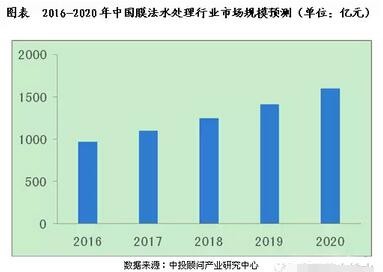 綜合多重因素預(yù)測,“十三五”期間膜法水處理行業(yè)產(chǎn)值五年復(fù)合增速大概落在10-15%間,若以13%進(jìn)行計(jì)算,到2020年我國膜法水處理行業(yè)市場規(guī)模將達(dá)1600億元左右。