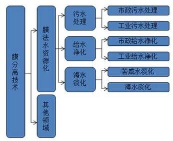 膜法水處理技術目前主要應用于污水處理(包括市政污水處理和工業(yè)污水處理)、給水凈化(包括市政給水凈化和工業(yè)給水凈化)、海水淡化(苦咸水淡化)和純水制備等領域。