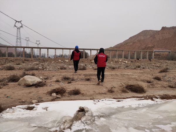 “不行咱們把鞋脫了蹚過去吧,繞著走太浪費(fèi)時(shí)間了。”巡視人員楊玉來一邊向雙手哈著“熱氣”,一邊準(zhǔn)備脫鞋。
