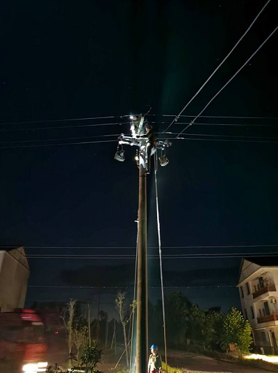 21時(shí)13分,經(jīng)過(guò)3個(gè)多小時(shí)的搶修工作,受損的線路順利恢復(fù)供電。圍觀群眾對(duì)供電員工克服困難連夜搶修豎起了大拇指,稱贊供電公司服務(wù)好。