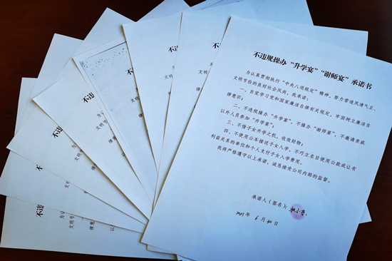 除短信提醒墻外,該公司黨總支重申紀(jì)律要求,組織對公司全體干部員工對家中有升學(xué)子女的職工向公司黨總支備案,督促簽訂《不違規(guī)操辦“升學(xué)宴”“謝師宴”承諾書》8份,并開展集體約談,予以重點(diǎn)監(jiān)督。