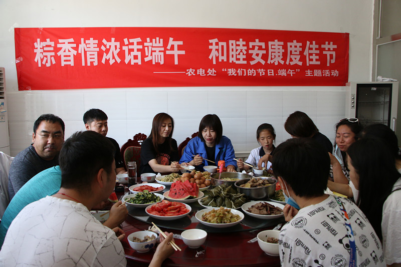 粽子包完后,大家中午一起品嘗端午家宴,共敘家常,一片其樂融融。隨后,該處班子成員還到千里山農電所開展了端午節(jié)日慰問,給職工們帶去了粽子等慰問品,并致以節(jié)日問候。大家坐到一塊,一邊品嘗著美味的粽子,一邊促膝談心,在談心中了解職工們的工作生活情況,讓他們感受到農電大家庭的溫暖,度過一個情意濃濃的端午節(jié)。