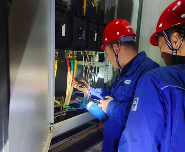 中國(guó)電力網(wǎng)訊 3月26日晚,朦朧夜色中,一群頭戴安全帽,身穿藍(lán)色地電工裝的人員出現(xiàn)在城南專(zhuān)變客戶(hù)的計(jì)量裝置旁邊,在強(qiáng)手電光的照耀下,大家相互配合、緊密協(xié)作,檢查每根接線(xiàn),用鉗型電流表測(cè)量電流,做好相關(guān)記錄......。