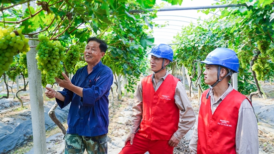 本網(wǎng)訊 “多虧了供電公司提前為我們安裝變壓器、架設(shè)線路,讓我們的冷庫和灌溉系統(tǒng)全天候工作,葡萄才能獲得大豐收。”8月23日,遞鋪街道熊出沒葡萄園內(nèi)的農(nóng)戶指著一串串青翠欲滴的葡萄對前來檢修用電的紅船共產(chǎn)黨員服務(wù)隊(duì)激動地說道。